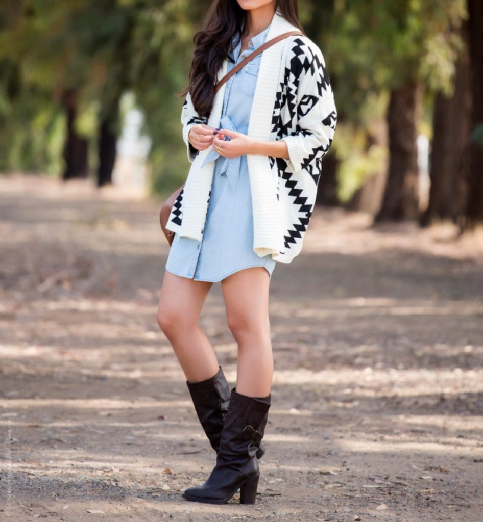 You can also match loose cardigans in many different ways. You can wear a classic striped t-shirt with jeans and a loose cardigan for a simple yet stylish look. Try a boyfriend T-shirt and a loose cardigan to create a feminine, casual look.